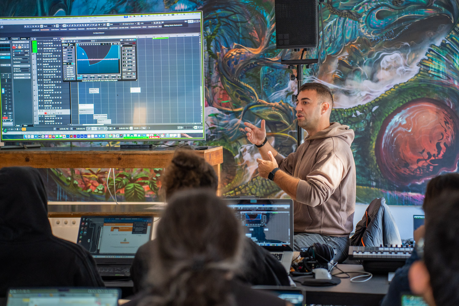 Embodied Music Creation is the guiding concept of this programme. It focuses on restoring physical sensation, movement, and emotional presence to psytrance production. At a time when music is often shaped by over-intellectualised processes, excessive complexity, and sound design treated as an end in itself, this approach offers a different direction, one grounded in groove, feeling, and direct listening.